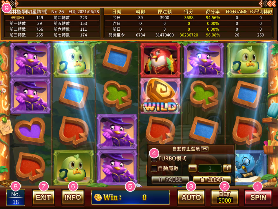 - TURBO模式:設定後會快速開出盤面結果,且不限於自動模式使用。