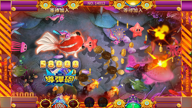 - 押注按鈕:顯示該玩家目前的押注總額,可用+/-按鈕來調整押注額。若玩家的砲種非「一般砲」與「鎖定砲」時,不可調整押注額。