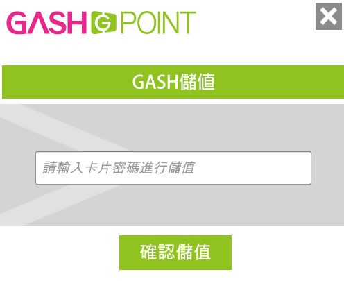 點選【GASH卡儲值】,輸入GASH卡的儲值密碼後點選【確認儲值】按鈕即可。